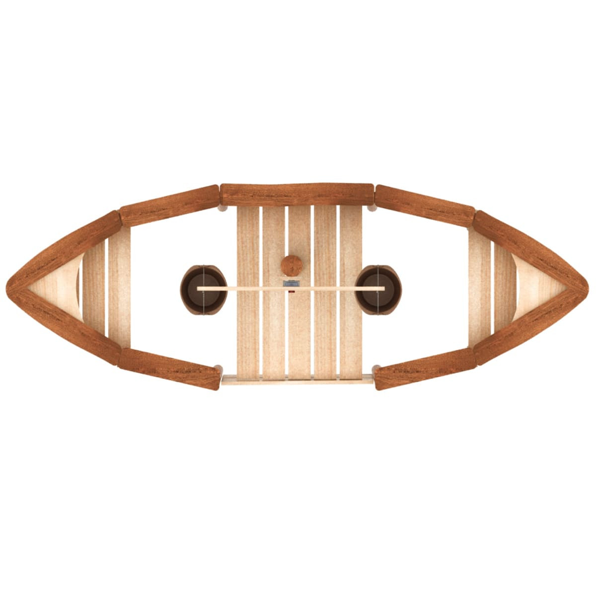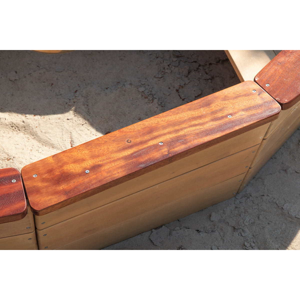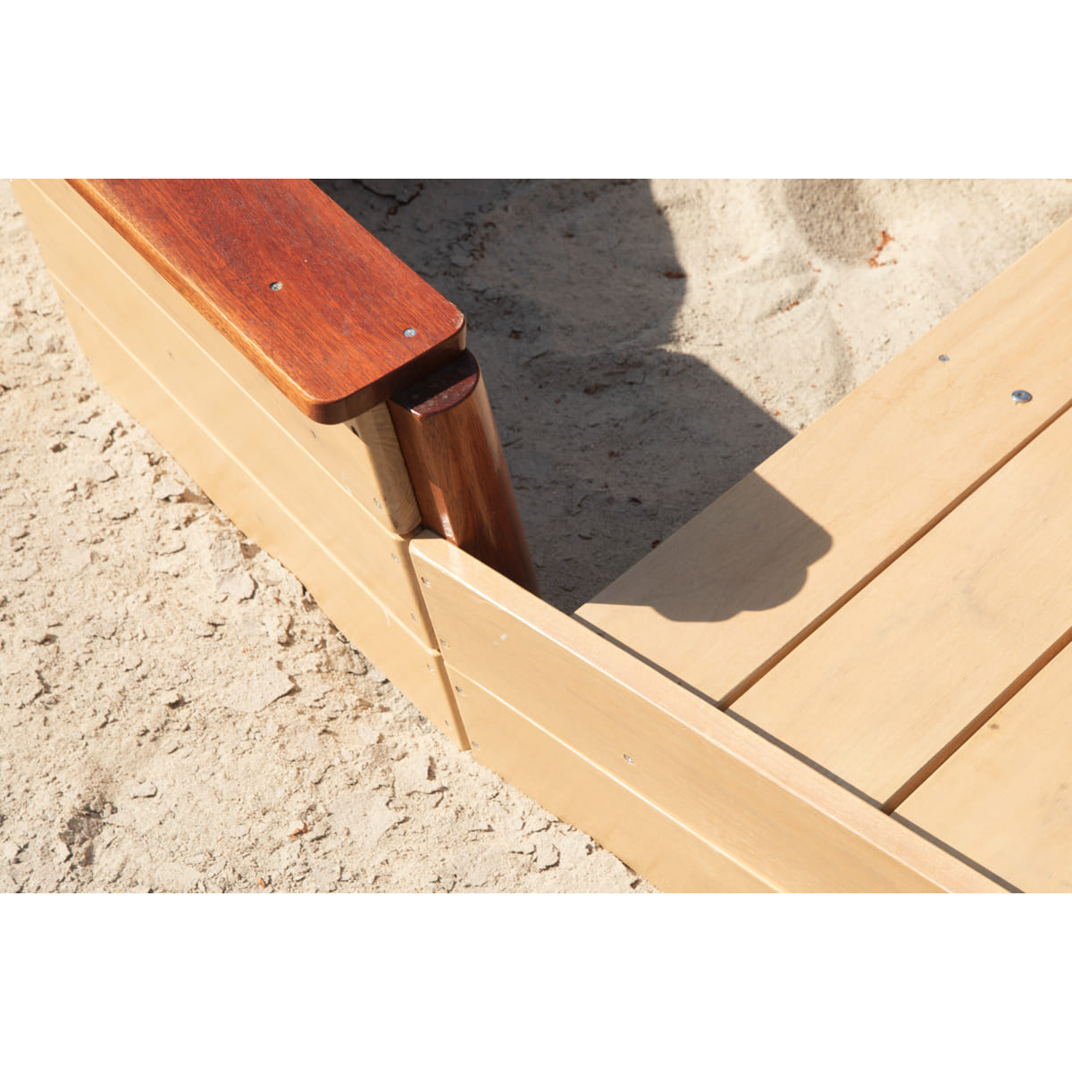 Matériaux : bois de tali, merbau et robinier, acier inoxydable, PE