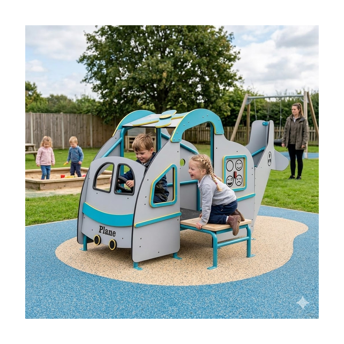 Le thème de hélicoptère stimule l'imagination des enfants qui se glissent dans la peau d'un pilote ou d'un membre d'équipage. Les panneaux de commande interactifs (boutons et molettes ) favorisent l'exploration tactile et le jeu de rôle. Les hélices rotatives ajoutent du mouvement et de l'excitation à l'aventure aérienne.