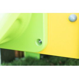 Fabriquée à partir d'une structure en acier galvanisé et thermolaqué et de polyéthylène, cette structure de jeu extérieure se caractérise par sa robustesse et sa durabilité. Le choix rigoureux des matériaux garantit que l'équipement de jeu résistera facilement à une utilisation intensive au quotidien en crèche ou en école maternelle. Elle a été développée et certifiée conforme à la norme DIN EN 1176 afin de garantir les plus hauts standards de sécurité.