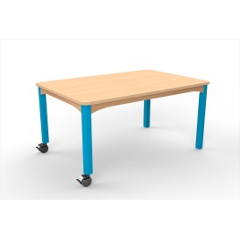 Table octogonale 4 pieds personnalisable montée sur patins antibruit. Elle peut se décliner en différentes hauteurs, avec plusieurs couleurs de plateaux au choix et de finitions.