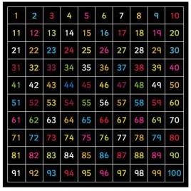 Tapis géant les chiffres 1 à 100 en matière plastique PVC. Donnez aux enfants la possibilité d’apprendre et de jouer en intérieur ou en plein air avec notre robuste tapis sour forme de tableau indiquant des chiffres de 1 jusqu'à 100 sur un tapis de 100 cm de côtés. Ce tapis sous forme de tableau...