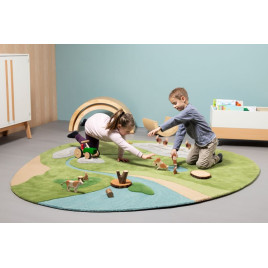 Comment la nature évolue-t-elle au fil des saisons ? Les 4 tapis de 160 x 160 cm représentant chacun une saison dans cet ensemble, aident les enfants à préparer les changements des saisons, en représentant le même paysage au printemps, en été, en automne et en hiver.