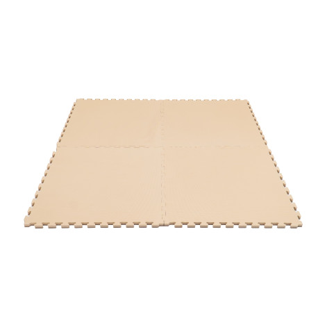 Lot de 4 tapis 90 x 90 cm emboîtables beige et blanc fabriqués en mousse EVA de haute qualité, pour un espace de jeu total possible de 180 x 180 cm.