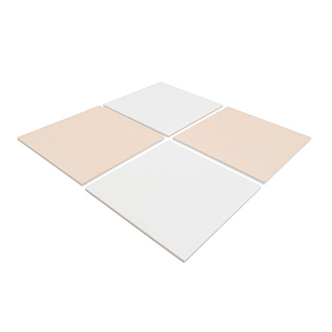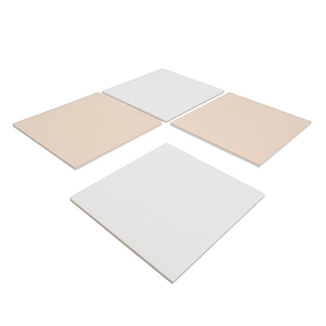 Les 4 tapis 90 x 90 cm emboîtables beige et blanc sont faciles à nettoyer, résistants et s’accordent parfaitement avec nos produits de jeu souples.