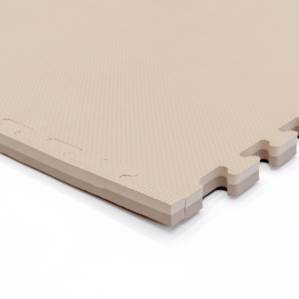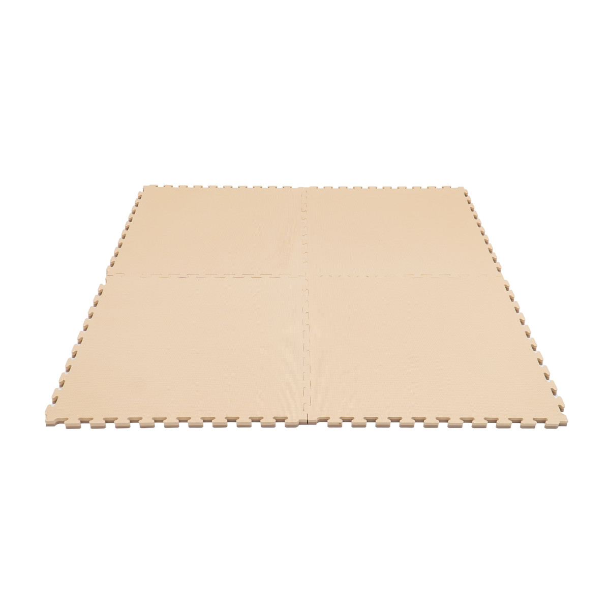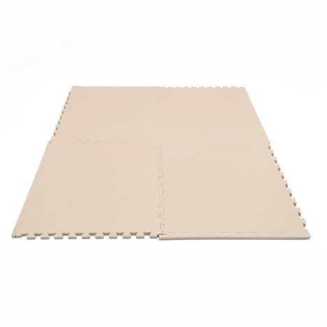 Lot de 4 tapis 90 x 90 cm emboîtables beige et taupe fabriqués en mousse EVA de haute qualité, pour un espace de jeu total possible de 180 x 180 cm.