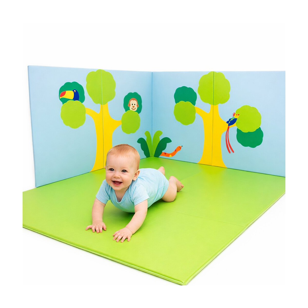 Tapis mural la jungle : ensemble de protections de mur fabriquées en mousse avec des figurines cousues. Tapis mural parfaitement adapté pour des aménagement d'espaces pour protéger les enfants dans un cadre sympathique en crèche, maternelle, espace accueillant du public...