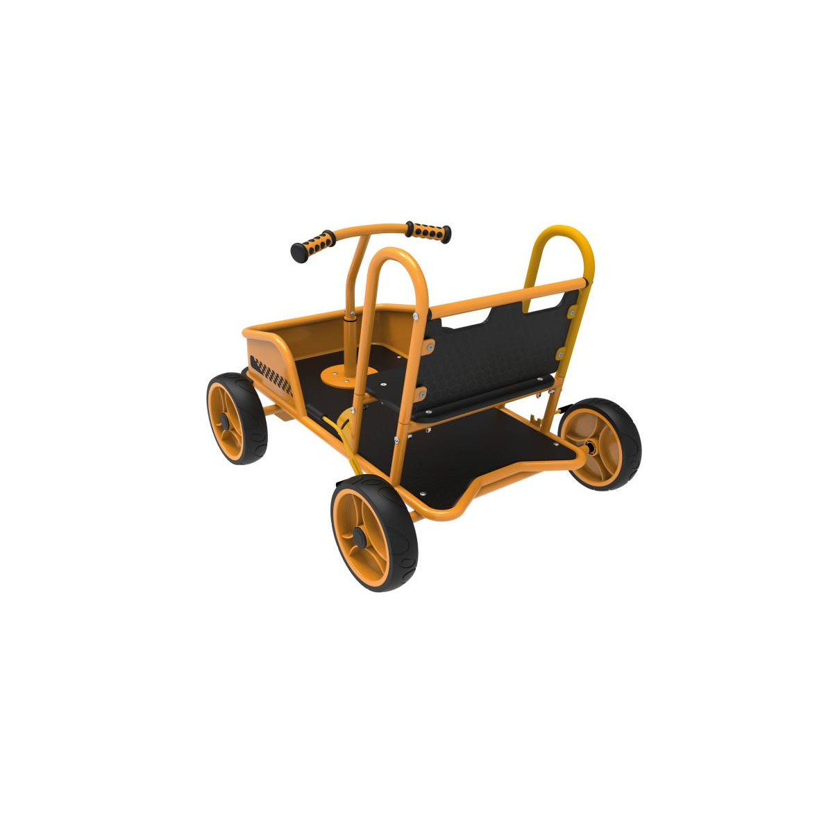 Lorsqu'ils ont pris un peu d'élan, le deuxième enfant peut se placer à l'arrière. Grâce aux poignées de frein faciles à utiliser, les enfants freinent seuls (poignée en bas à gauche du conducteur).