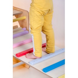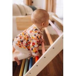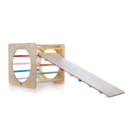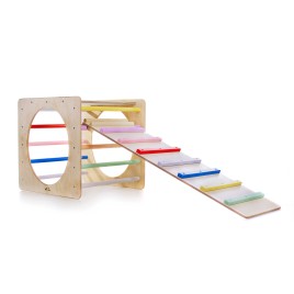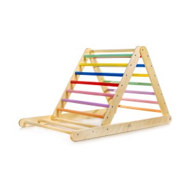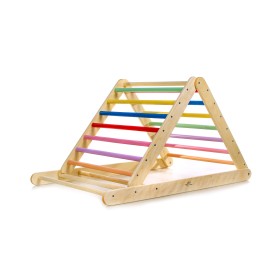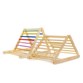 Le triangle de Pikler arc-en-ciel est un cadre d'escalade d'intérieur pliant inspiré par Emmi Pikler.