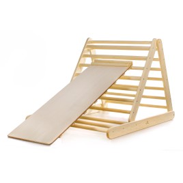 Facilement pliable pour le stockage, lorsque le triangle de Pikler est ouvert, il est conçu pour être autoportant. Peut être utilisé à l'extérieur, mais ne peut pas être laissé à l'extérieur par temps pluvieux.