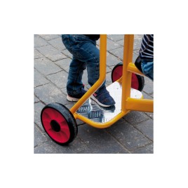 Transporter des objets sur le tricycle vers des lieux lointains ou un copain vers la cabane de la cour stimule l'imagination et développe l'interaction sociale.
