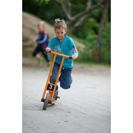 Les enfants adorent faire de la trottinette ; cela leur offre de nouvelles possibilités de déplacement et renforce leur confiance en eux. Hier, c’était un tricycle : « Aujourd’hui, je peux faire de la trottinette ! » La trottinette est un excellent moyen de travailler l’équilibre et la coordination.